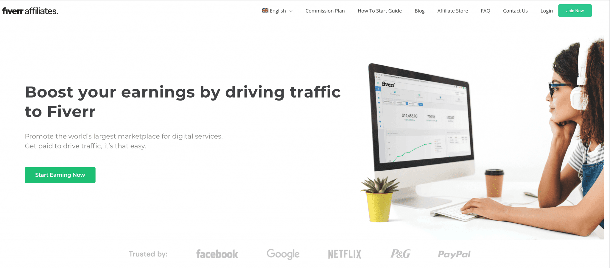 Fiverr, dijital hizmetler alanında Amazon ve eBay'e benzer. Eğer Fiverr'da biraz vakit geçirdiyseniz buranın ilginç bir yer olduğunu bilirsiniz. Aptalca ve spam içerikli 5 dolarlık tekliflerden 100 dolarlık konserlere kadar platformda herkesin tanıtabileceği bir şeyler var. Fiverr ortaklık programı söz konusu olduğunda, %10 ömür boyu kazanç payı ile 150 ABD Doları EBM veya 10 ABD Doları EBM'den oluşan dinamik bir komisyon yapısı seçmenize olanak tanır.